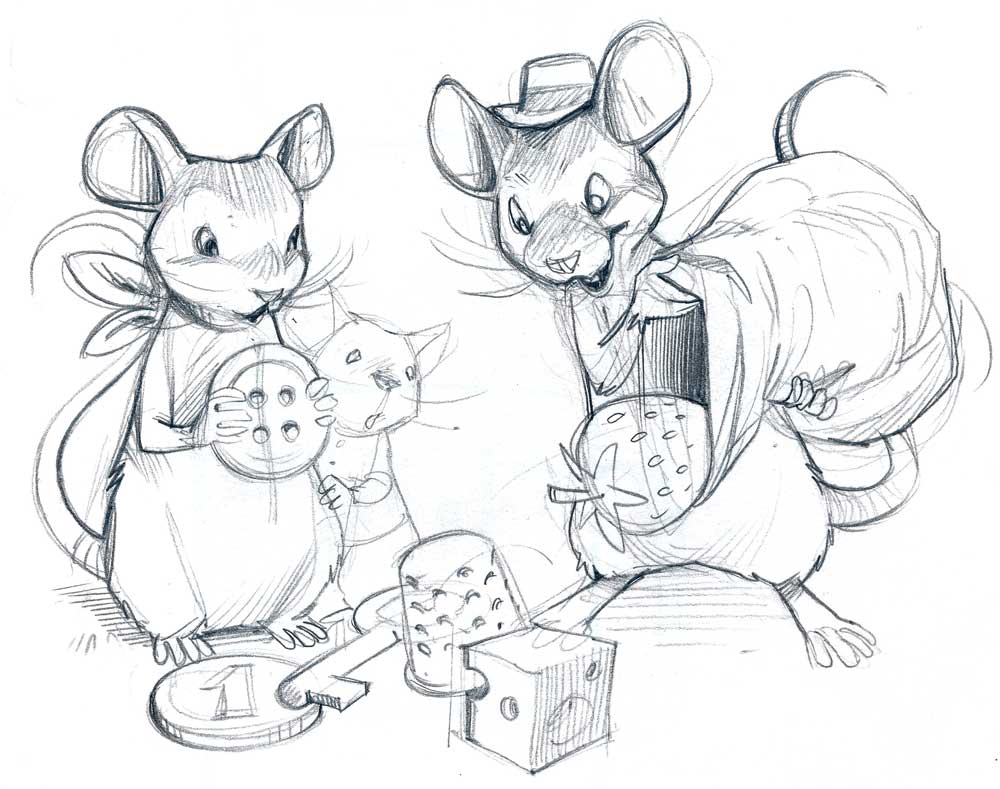 As for the cover, I wanted us to be "with the mice", inside, to show the other side of what we see of the house, another angle of view. The little girl at the back (to whom I unintentionally gave the features of my own daughter) gives an idea of the head we would have when we bend down in front of the hole to observe.